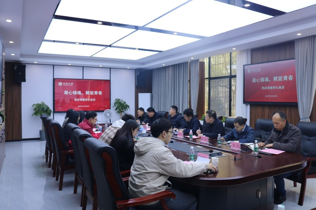 12月28日上午,“凝心铸魂,赋能青春”思政课暨校领导与公管院和交通院师生座谈会于铁道校区交通楼119召开。中南大学党委副书记黄健陵、公共管理学院党委书记杨旭东、交通运输工程学院党委书记袁世平、公共管理学院党委副书记耿贵斌、交通运输工程学院党委副书记李苑以及两院教师代表、学生代表参加此次座谈会。会议由交通运输工程学院党委副书记李苑主持。