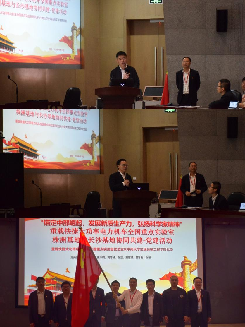 党委书记袁世平带领交通院各党支部代表,赴中车株机公司重载快捷大功率电力机车全国重点实验室(下述简称“国重实验室”)举办联合党日活动。国重实验室党总支书记贺亚伟、国重实验室常务副主任蒋济雄等相关领导参与活动。