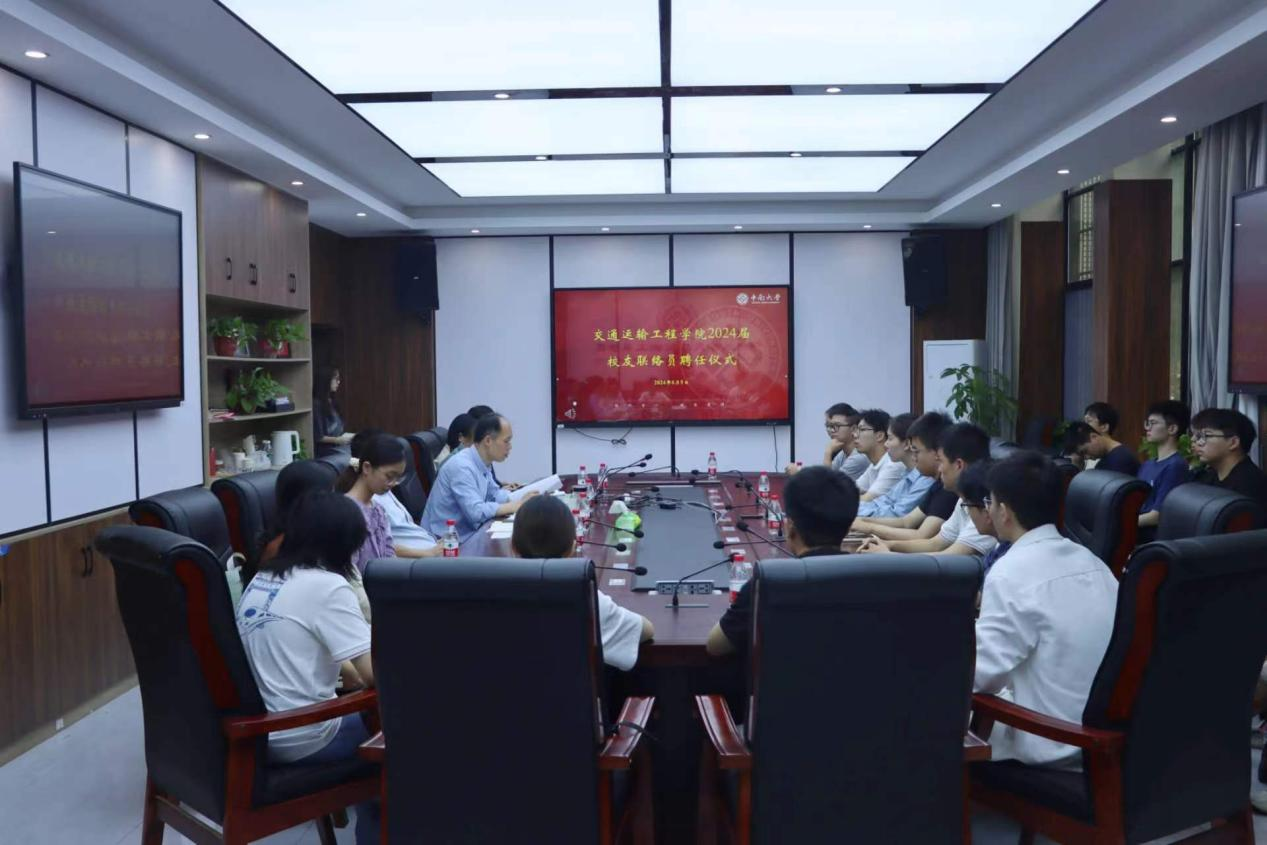 6月5日上午,交通运输工程学院于交通楼119举行2024届校友联络员聘任仪式。学院党委书记袁世平、副书记李苑,教师代表及2024届全体校友联络员参加会议。