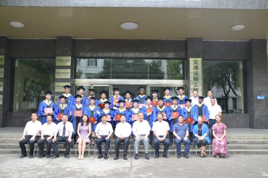 2018年7月5日,商务部援外学历学位教育项目2016级交通运输工程硕士留学生毕业典礼暨学位授予仪式隆重举行,这是 该项目第一批毕业的外国留学生。二十三名同学全部顺利完成了自己的学业,取得了中南大学专业硕士学位。他们将回到自己的祖国,利用在中南大学所学到的知识,为祖国交通运输事业的发展建设贡献出自己的力量。