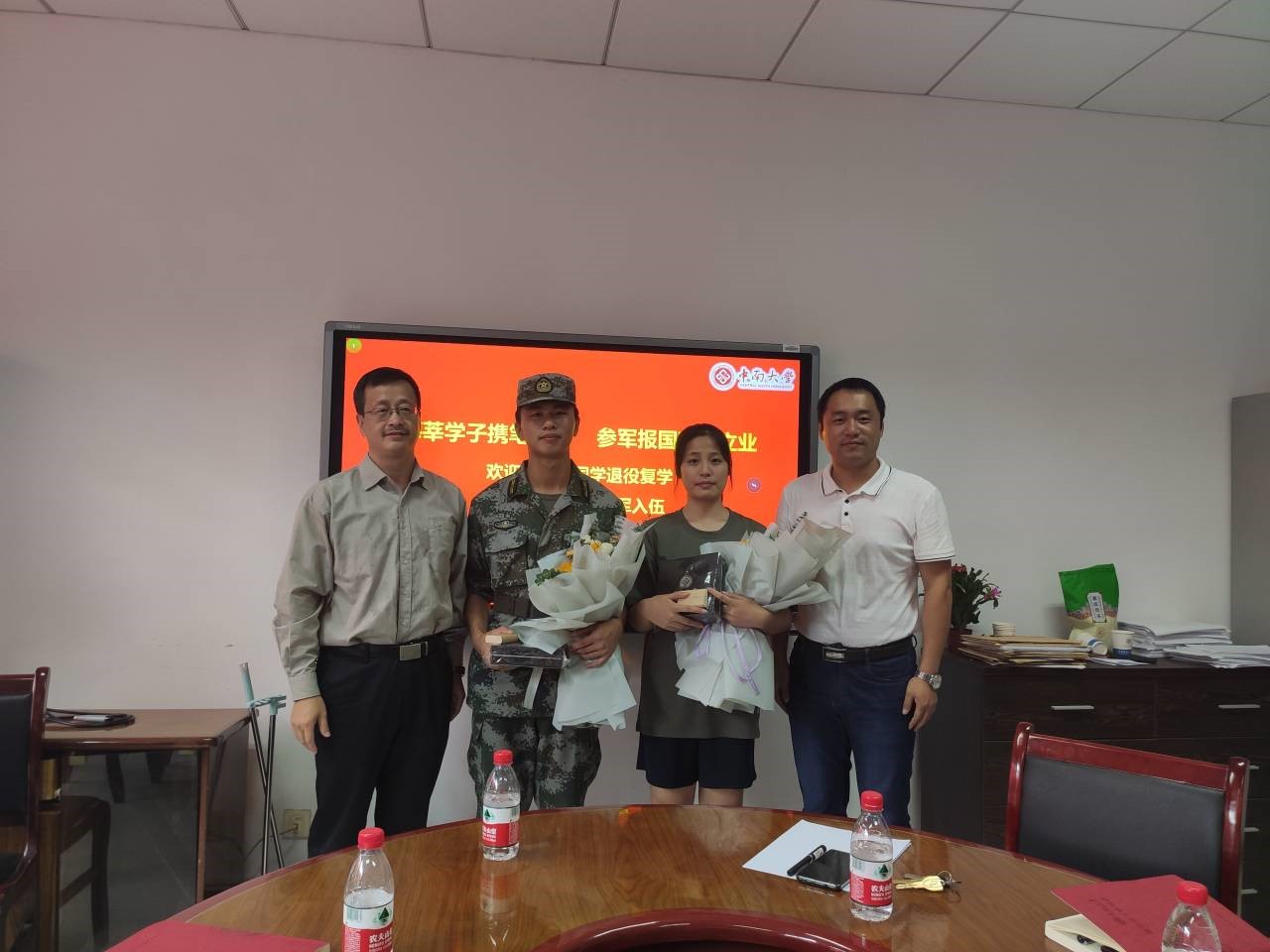 参军报国,无上光荣。当代大学生应当牢记习总书记嘱托,担负起推进国防和军队现代化建设的时代重任,希望龚智龙 同学在校园继续成长进步,祝愿吴婷同学在军旅生活中书写精彩人生!
