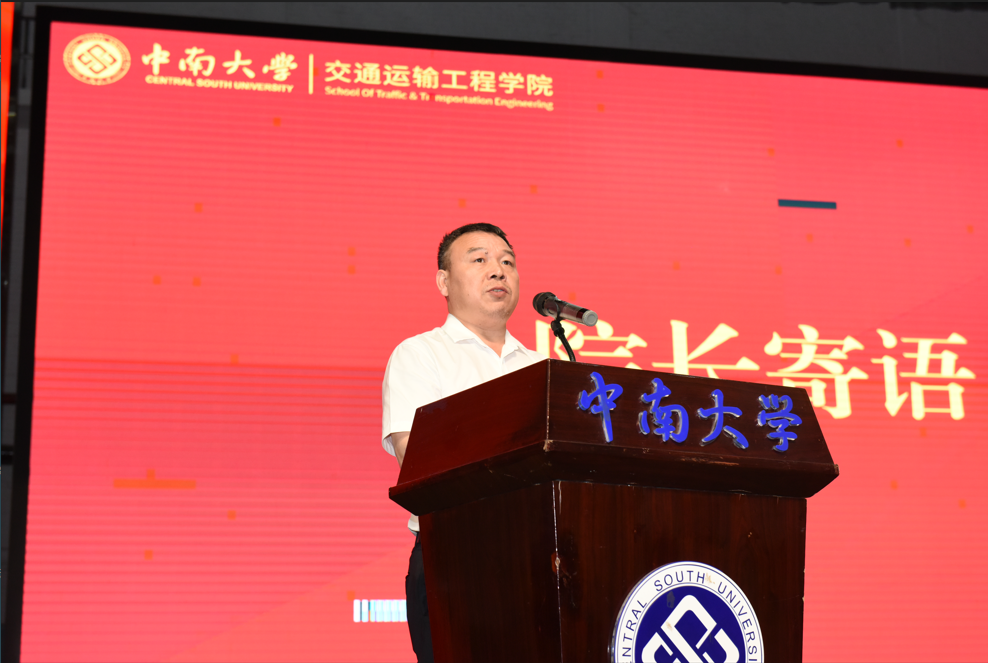 随后,高广军院长发表讲话。首先,高院长对各位毕业生顺利毕业表示热烈祝贺,并细数了同学们在中南大学时光与学院同向同行、合力发展所取得的辉煌成就。之后,他语重心长地谈到:“时代是青年发展最宝贵的沃土,青年是时代发展最蓬勃的动力。”勉励在座学子在面对国家需求时,应勇担时代使命;面对个人养成时,应锤炼品德修养;面对职业发展时,应练就过硬本领;面对前程闯荡时,应发扬中南精神。最后,高院长深情谈到:“青山不改,绿水长流,山水有相逢。亲爱的同学们,请相信,母校永远会是你们的港湾。”