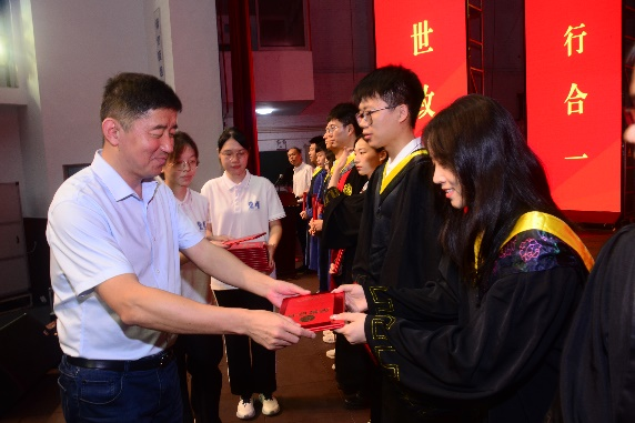 庄严的国歌声后,韩锟副院长宣读《关于表彰2024届优秀毕业生的决定》,袁世平书记为湖南省优秀毕业生、湖南省创新创业优秀毕业生、中南大学优秀毕业生、中南大学志愿服务基层优秀毕业生颁发荣誉证书。