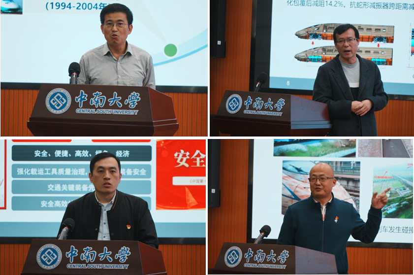 的专家学者围绕轨道交通发展历史及关键技术展开4场学术报告。中南大学梁习锋教授以《风雨兼程30年,与中国铁路共辉煌》为题,回顾了中国铁路发展的辉煌历程以及中南大学高速列车研究中心服务中国铁路发展的成长经历;中车青岛四方机车车辆股份有限公司刘加利、王晖、赵士忠分别就轨道车辆空气动力学、轨道交通司乘人员碰撞伤害评估、动车组异物碰撞安全等前沿技术进行深入研讨。这些报告不仅展示了我国在轨道交通领域的科研实力,也为双方后续进一步技术合作指明了方向。该活动由极端流动力能前沿科学中心副主任王中钢主持。