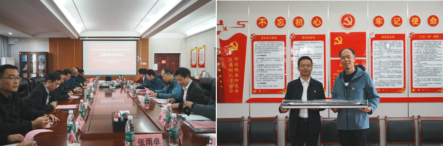 党建引领,共话发展新篇章。上午9时,活动在中南大学天心校区高速列车研究中心北楼201党员会议室正式拉开帷幕。中车青岛四方机车车辆股份有限公司国家工程技术研究中心副主任、第二党支部书记陈大伟和 党委副书记李苑首先就企业与学校党建工作成果与经验作专题汇报。双方围绕基层党组织建设、党员教育管理、党建与业务深度融合等议题展开深入交流,气氛热烈。座谈会上,中车青岛四方机车车辆股份有限公司还向学院捐赠了时速600公里高速磁浮列车模型,这也是校企双方在科研合作与人才培养方面紧密联结的重要代表作。本次会议由交通运输工程学院党委委员、极端流动力能前沿科学中心主任鲁寨军主持。