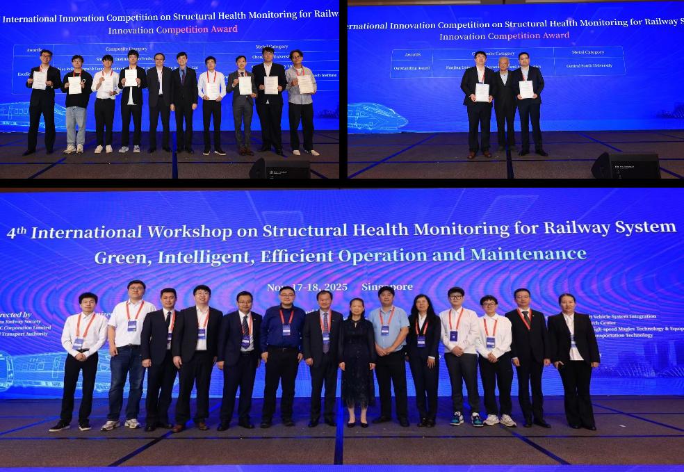 11月16-18日,第二届轨道交通结构健康监测国际创新大赛在新加坡金沙会议展览中心落幕,我院科研团队表现亮眼,成功斩获杰出奖、卓越奖及优秀论文奖多项重要荣誉。