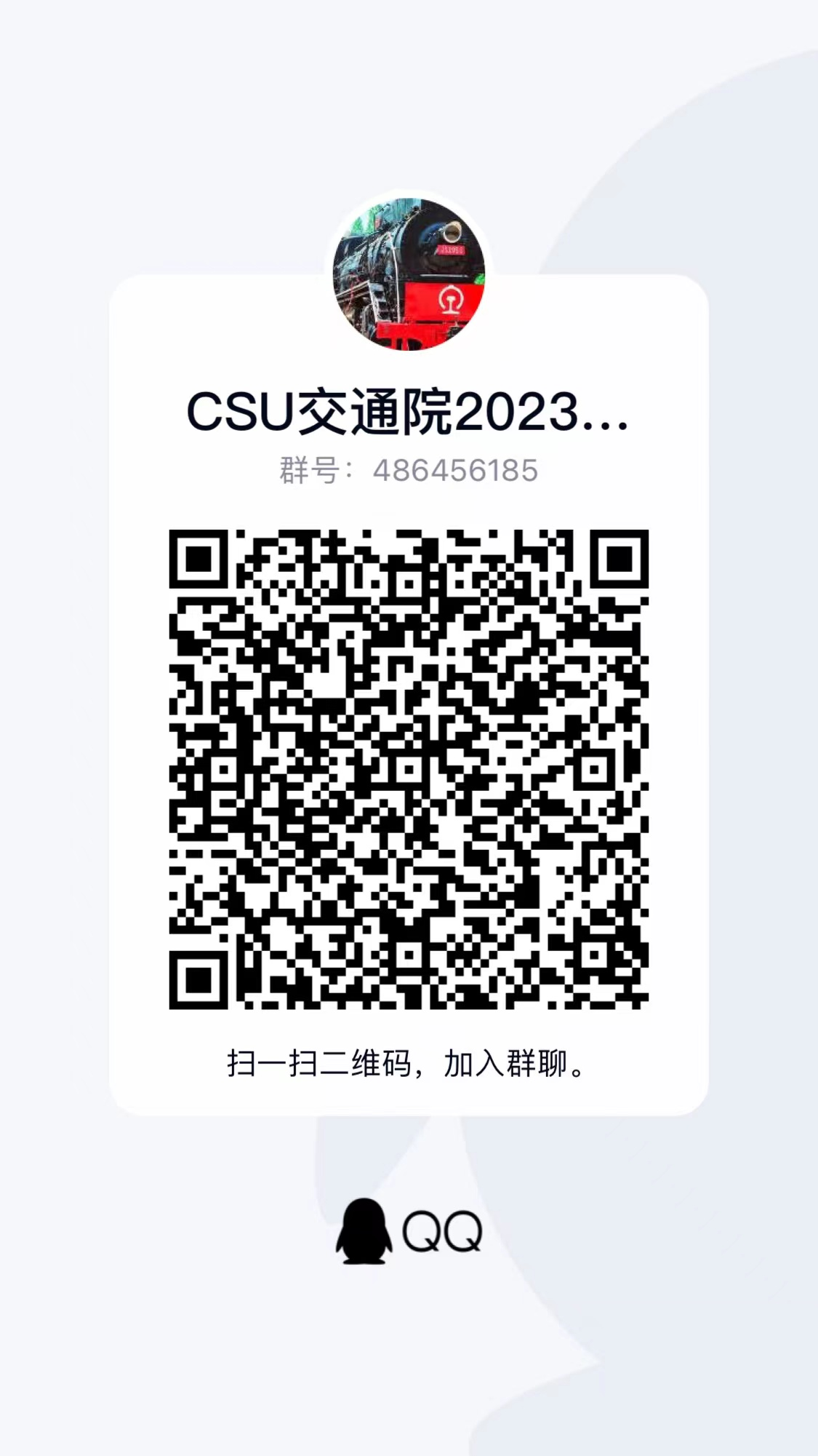 5.请有意愿参加我院2022年优秀大学生暑期夏令营的同学,扫码加入QQ群(CSU交通院2023研招群486456185),以便及时获取信息与通知。