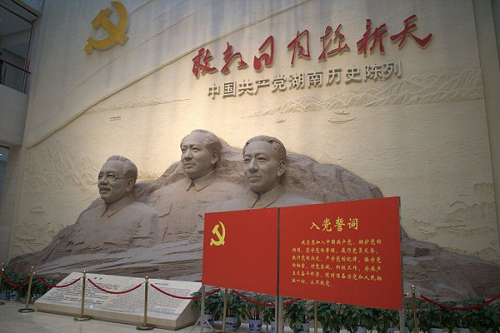 上午八点,同志们于升华广场集合完毕,坐车前往湖南党史陈列馆。同志们进入党史陈列馆后,毛泽东、刘少奇和任弼时三位湘籍伟人的雕塑便映入眼帘。大家感到十分震撼,更加深刻体会到先烈伟人们英勇献身、无私奉献的高尚情怀。