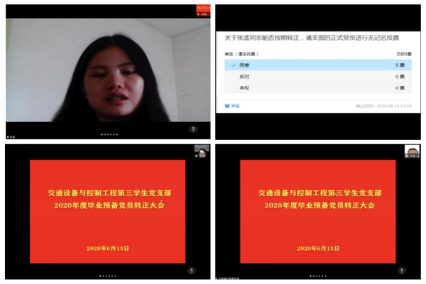 严格程序讨论预备党员转正,欢声笑语送别毕业生党员 ——交通设备与控制工程第三学生党支部特殊的云上相聚党日活动