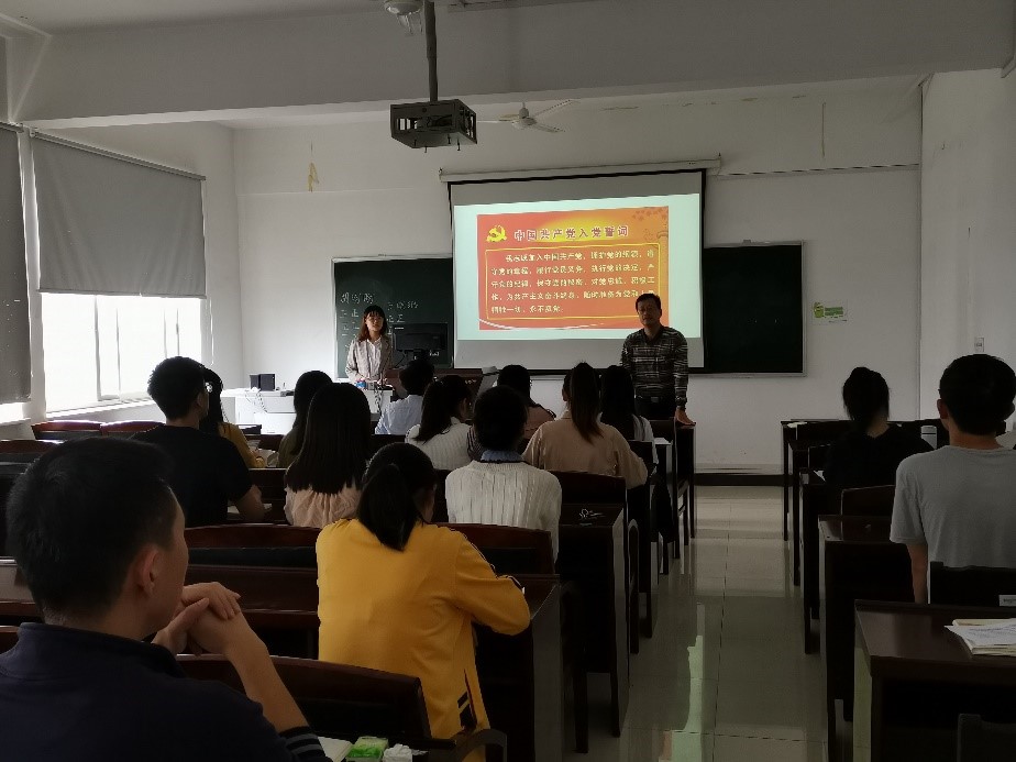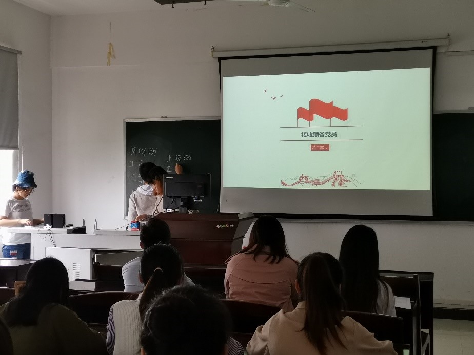 之后,胡盼盼,王晓璐两位发展对象依次上台宣读了自己的入党志愿书,入党介绍人介绍了发展对象基本情况,支部组织委员黄裕同志汇报了支部审查结论,支部党员充分发表了意见。之后进行了无记名投票,最终两位发展对象都全票通过,被支部接收为预备党员。最后预备党员依次表态,她们表示一定不辜负党组织的信任,积极学习努力工作,严格以一名共产党员的标准要求自己,不断加强自己的党性修养。