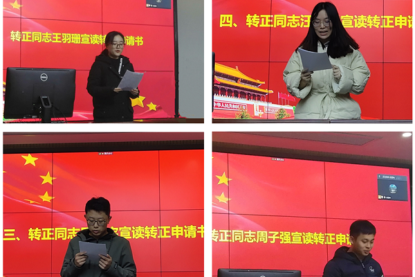 首先,郭秉筠同志简要介绍了本次会议的流程。王羽珊、周子强、周翔宇、汪卓聪等4名同志汇报在预备期间的思想、学习和工作情况,以及在预备期间所取得的成就;随后支部黄晴同志作为入党介绍人代表介绍了4名同志在预备期间的教育考察意见,并提出具有针对性的批评和建议,希望四名同志在认识到自身不足后能及时改正,戒骄戒躁,在各个方面不断完善、不断进步;由苏孟帅同志并代表支部委员会报告四位同志在预备期间的教育考察情况;随后,与会党员对4名同志能否按期转正逐一进行了讨论、发言;经大会全体正式党员无记名投票表决,一致同意四名预备党员转为中共正式党员。