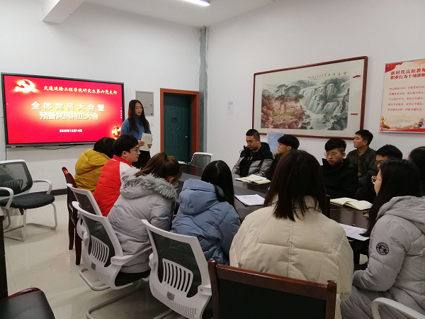 12月14日晚7点,交通院研究生第六党支部于交通楼420教室召开全体党员大会,讨论预备党员张雅睿的转正相关事宜,并进行了本年度第三批申请发展对象个人汇报。会议由党支部书记赵苛欣主持,全体党支部成员参与本次会议。