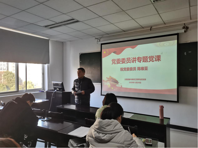 12月30日下午4点,交通院党委委员、院长陈维亚老师在交通楼516会议室为交通运输与物流工程学生党支部讲党课,带领党员同志们学习党的十九届五中全会精神。交通运输与物流工程学生党支部全体党员到场学习。