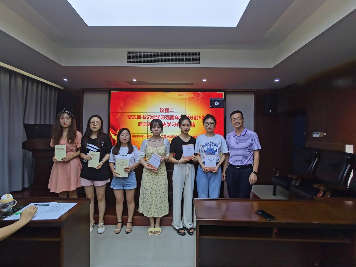 在黄裕同志总结后,由贺志军书记对本学期支部工作情况进行奖评。首先,贺书记为本学期学习强国年度积分前6名的同志颁发党史学习的相关书籍。随后,贺书记发表讲话,对本学期支部取得的工作成就表示祝贺,并希望在本次会议后,在座同志能认真反思自己、进行总结,开展坦诚的批评与自我批评,更加努力地学习党的理论知识,把习近平总书记在庆祝中国共产党成立一百周年大会上的讲话作为党史学习的重要内容,与其它党史资料结合,在学习中坚定自己的理想信念,发挥好支部的战斗堡垒作用,为国家发展、民族振兴奉献自己的力量。