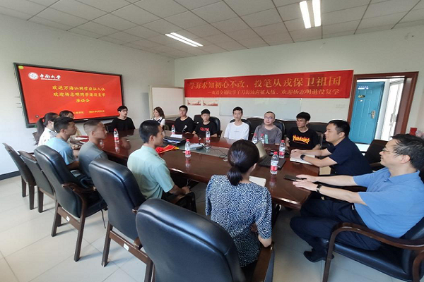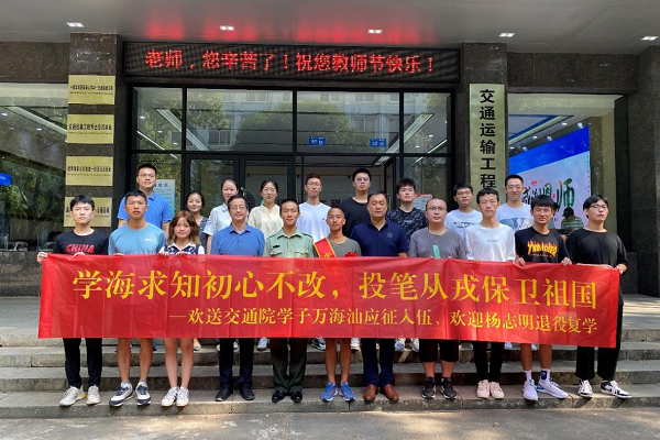 9月10日上午9点,交通运输工程学院在交通楼322会议室为学院今年应征入伍的万海汕同学、退役复学的杨志明同学举行了座谈会。学院党委贺志军书记、宋晓东副书记,辅导员张佳琪、任琭、石晓琪、郑繁简,2020年退役复学的龚智龙同学及19、20级学生代表参加了此次座谈。会议由学院党委副书记宋晓东主持。
