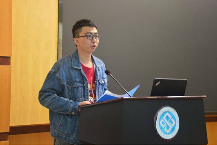 典礼开始前,全体起立,奏唱国歌。首先,由来自研究生第一党支部的黄钰均同志作为学员代表发言。黄钰均同学代表全体学员表达了对党组织的向往以及对本次学习机会的珍惜。他用毛泽东同志的“唯有牺牲多壮志,敢教日月换新天”回顾了百年党史、描述了自己的入党动机,并代表全体成员郑重承诺,在党校学习期间会以最认真的态度完成每一次的学习,扎实提升个人理论基础素养与党性修养。