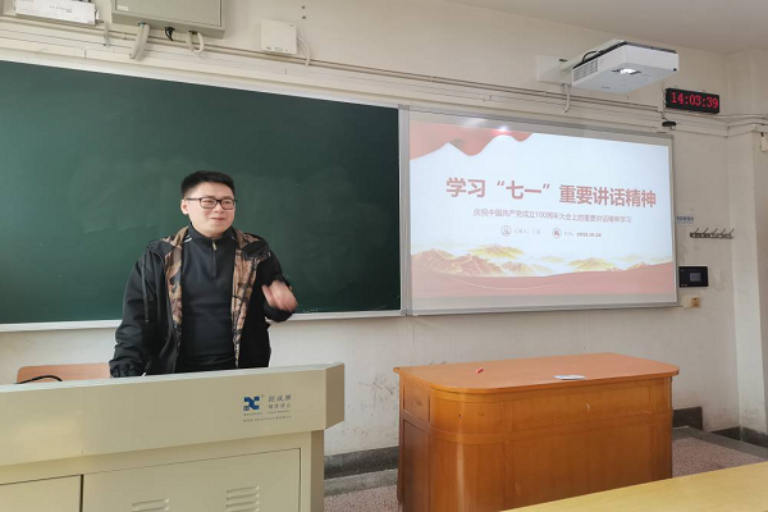 首先,丁晟同志主要围绕“庆祝中国共产党成立100周年大会”上习近平总书记的重要讲话展开讲解。他为同志们系统地阐述了习近平总书记在本次讲话中的四大重要内容:“回顾中国共产党百年光辉历程”、“诠释中国共产党的伟大建党精神”、“展望中华民族伟大复兴的九个必须”、“寄语广大青年和号召全体中国共产党员”。最后,丁晟引用习近平总书记的讲话劝诫和鼓励支部同志要牢记初心使命,坚定理想信念,践行党的宗旨,为中华民族的伟大复兴中国梦不断奋斗。