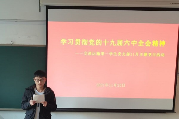 交通运输第一学生党支部“学习贯彻党的十九届六中全会精神”主题党日活动顺利举行