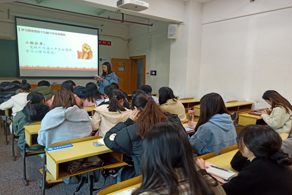 在激烈的讨论后,三个小组分别推选代表进行了总结发言。邓映华同志代表第一组进行汇报,她从中国共产党百年奋斗的历史意义、历史经验出发,谈到该组成员的心得体会。孙艺婕同志代表第二组发言,她提到,党和人民取得的一切成就都是通过不断斗争取得的。牟捷同志代表第三组进行分享,从全面从严治党、全面深化改革、文化建设三个方面进行阐述。她提到,党的十八大以来,我国人民文化自信明显增强,整个社会的凝聚力也大大提升,这离不开党在意识形态领域的建设。