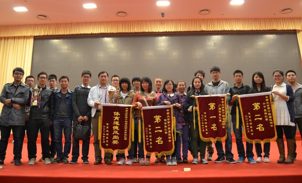 2013年10月20日我校于中南讲堂隆重举行中南大学第四届“运动中南”暨第十四届运动会颁奖典礼。本次颁奖典礼由中南大学体育教研部和中南大学学工部(武装部)主办,中南大学建筑与艺术学院和中南大学信息科学与工程学院共同承办。在刚刚结束的校运会中,各二级学院表现优异。校运会期间,运动健儿的积极参与,各学院工作人员的相互配合,各项工作均有条不紊地进行。其中,多项比赛项目均刷新纪录。