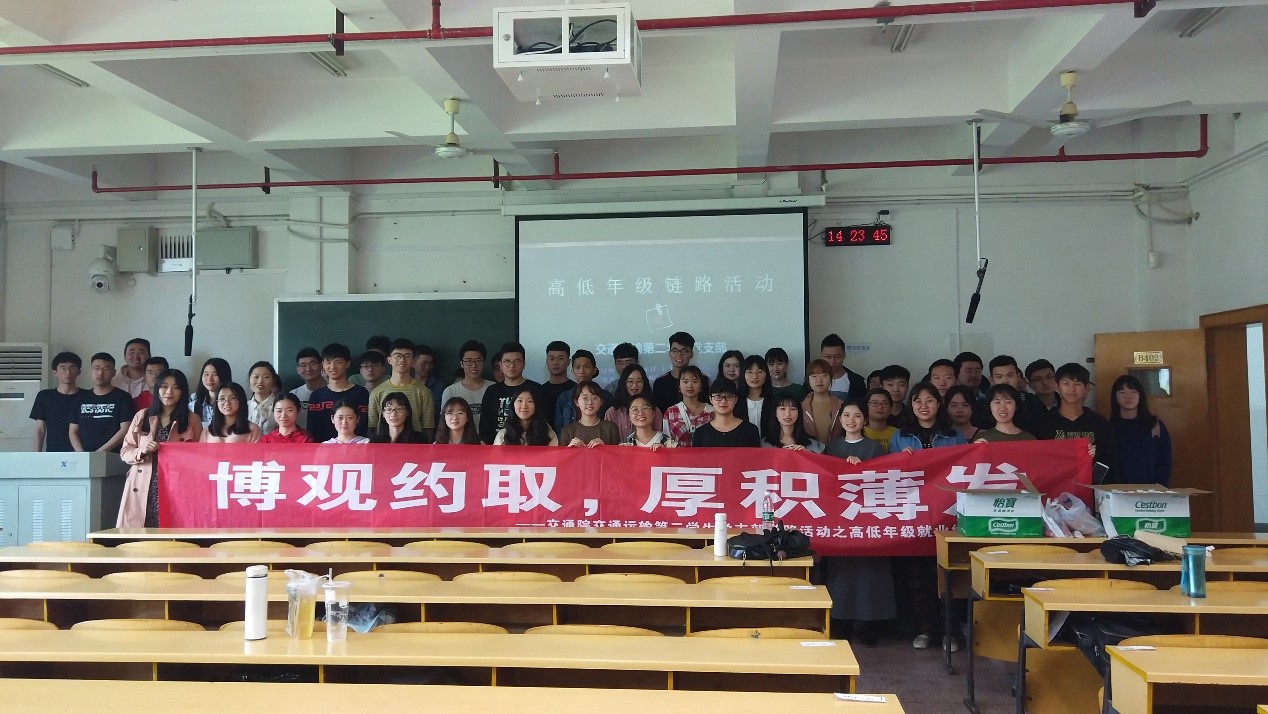 4月17日下午两点,交通运输第二学生党支部在铁道校区B402教室正式举行高低年级经验交流会。本次交流会由王夏宁同志主持,来自党支部和6个团支部的80余位同学参加了此次交流会。