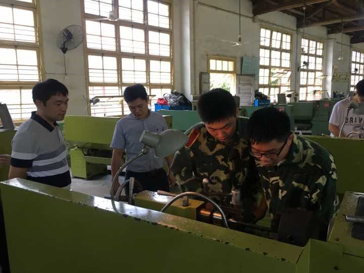 7月17日上午11点,交通运输工程学院党委副书记宋晓东老师,18级辅导员黄永明老师和陈晨老师来到金工实习的车间现场,看望在车间学习工作的设备专业同学们。