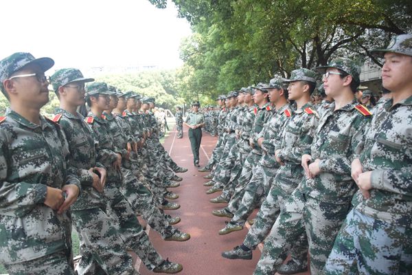 站军姿时,两脚张开,两腿夹紧,下巴微收……每一个动作都是士兵对自己的规范;踢正步时,手臂抬起,出脚有力,脚尖绷紧……每一步向前都是士兵的执著;蹲下时,腰板挺直,两腿放正,脚尖踮起……每一次矫正都有着士兵的满腔热血。
