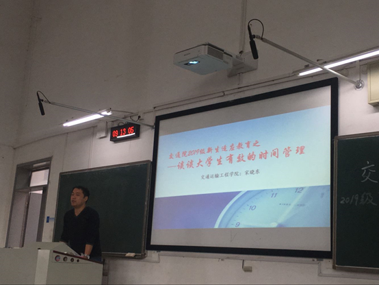 交通运输工程学院党委副书记宋晓东老师以《大学生的有效时间管理》为题,从“时间管理是什么”、“为什么提升时间管理的有效性”、“怎么做”三方面对大学生如何进行有效时间管理做了详尽的阐述,他的课程内容生动,案例鲜活,为在场新生传授大学生科学的时间管理方法,鼓励大一新生合理利用时间、利用好零散时间、劳逸结合,学会管理时间,提高学习效率。