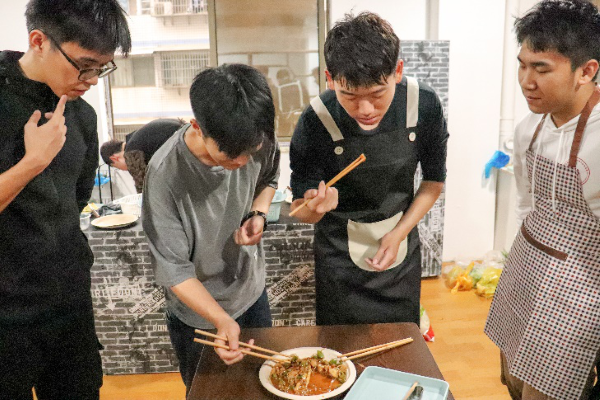 试运营当天,团队成员早上8点便前往集市购买新鲜食材。这一天,“丰衣足食”共享厨房迎来了第一批慕名前来体验的顾客。这批顾客以中南大学学生为主,从上午到下午分为6组,每组顾客在一名厨师的带领下利用厨房提供的食材进行烹饪。其中,许多同学都是第一次自己动手做饭,洗菜、切菜、翻炒、调味,每一个简单的细节都给这些厨房新手带来挑战和快乐。室外,秋风携来阵阵凉意,厨房里,人间烟火,其乐融融,热气氤氲掩不住或疑惑或惊喜的说笑与呢喃。紧张又兴奋,疲惫又热忱,团队成员们忙碌着,观察着,也思考着。