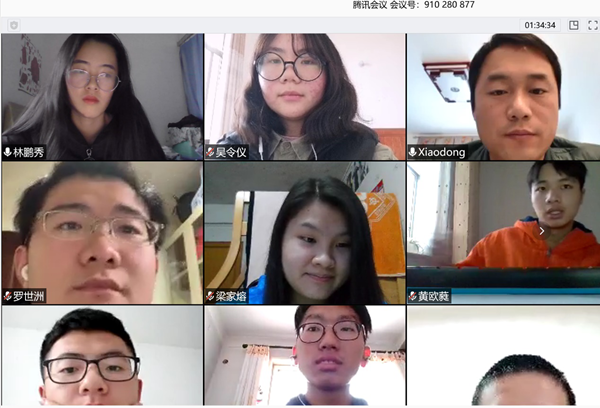会议伊始,高辉老师简要地回顾了由教育部社科司、人民网3月9日联合举办“全国大学生同上一堂防疫思政大课”的内容。随后,身在武汉的罗世洲以及舒靖瑶、梁家熔、黎瑞等同学,分别围绕新冠肺炎疫情以来党和国家关于疫情防控工作的部署、“疫情防疫”思政大课内容以及自己身边的防疫故事展开交流。舒靖瑶同学说:“从长远的角度来看,这次防疫也许并非一件坏事,它让我们更好地认识了中国。同时,我们也会增强对未来的信心,理性一点、乐观一点,相信我们能战胜任何事!这次疫情让我感受到了自己的渺小,我已经成年、上了大学,但能为国家做的还是那么少。这会让我感到差距,但同样也会成为我今后努力学习的动力。”梁家熔同学用一句“我们要知道这个我们待的烦闷枯燥的家,是很多医护人员想回也不能回的家”表达了对医护人员的敬佩。而黎瑞同学在疫情中深切感受到“温热的跳动就是活着”的内涵,疫情让他明白国家不是一个单独的名词,而是由一个一个活生生的人组成的,它不是苍白的,而是温热的,有力量的。最后身处在武汉抗疫一线的罗世洲同学,则用他的亲身经历告诉大家疫区的生活并没有谣言中的那么可怕,虽然疫情严峻,但是人们依旧对生活充满信心。