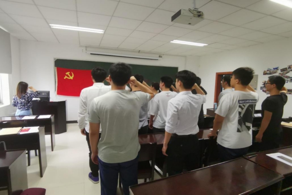 最后,与会同志进行入党宣誓环节,由许倩同志领誓。入党宣誓后,支部书记高辉老师对本次会议进行了总结,并鼓励大家积极为支部建设做出贡献,并叮嘱支部同志要坚定理想信念,不负青春、不负韶华、不负时代,学好知识本领,为实现中华民族伟大复兴贡献聪明才智!