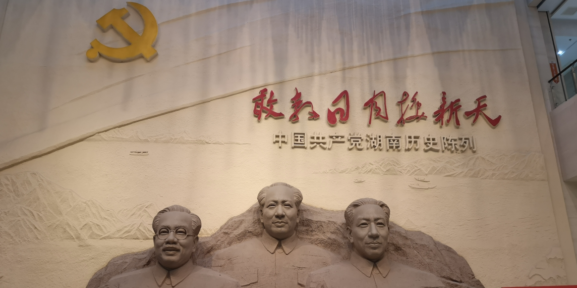 随后,大家来到湖南省党史陈列馆进行学习。走进党史陈列馆,大家首先看到的是名为“潇湘魂”的毛泽东、刘少奇、任弼时三座大型伟人半身雕塑,伟人亲切、伟岸的形象近在眼前,令人倍感振奋。党史陈列馆布展以“敢教日月换新天—中国共产党湖南历史陈列”为主题,前三部分采用编年体形式,分别以“开辟新天地”、“描绘新画卷”、“谱写新篇章”为题,展现了中国共产党革命、建设、改革的三个历史时期,第四部分“三湘群英谱”则用专题形式,介绍以毛泽东为代表的湘籍和长期在湘工作的优秀党史人物,其中包括党和国家领导人、人民军队高级将领、著名英烈代表及各领域杰出代表和历任湖南省委书记。馆中陈列的一段段珍贵的文字,一幅幅泛黄的老照片,一件件承载了历史记忆的文物都让学员们对党的艰辛历程有了更加深刻的了解,也对建党以来所取得的成绩感到由衷的崇敬。