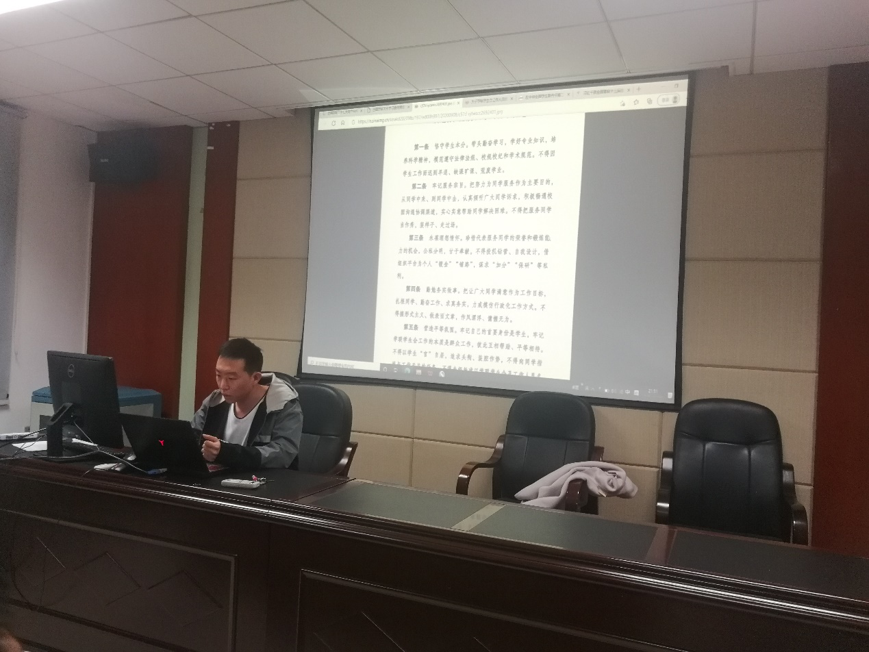 与会学生干部们认真研读文件内容,结合工作实际,纷纷畅谈了自己的心得体会。任老师强调,作为学生干部,应该坚定理想信念,树立正确的三观,积极团结同学,不搞形式主义,紧紧和同学们站在一起,切实服务广大同学,将学生会和研究生会发展成作风优良、团结紧密的优秀队伍。