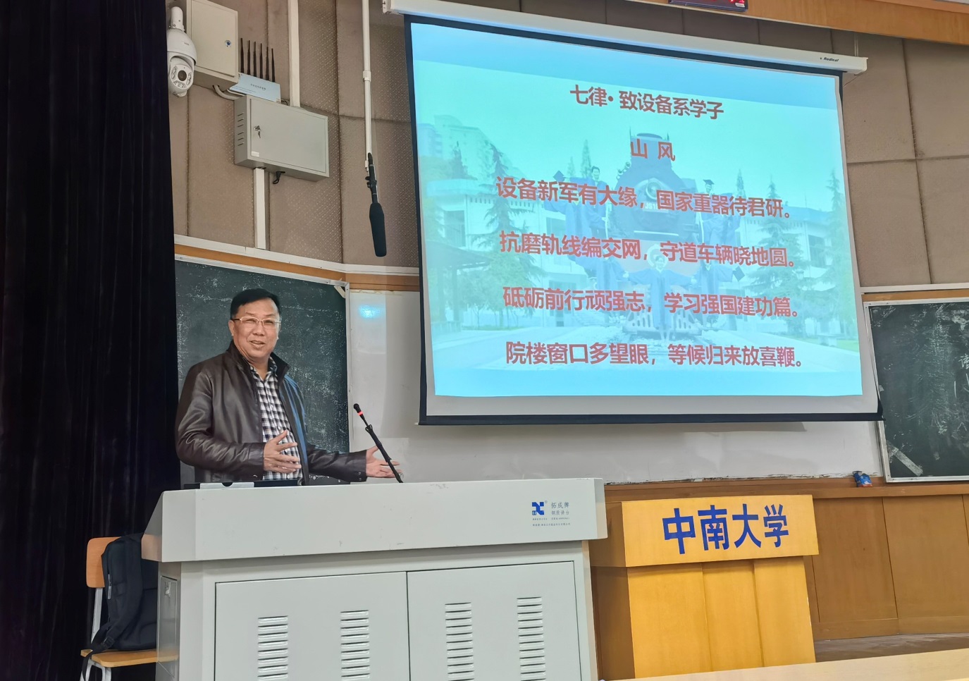 随后,系主任章易程老师对于实习的意义进行了补充,并提醒同学们在外实习要注意维护中南大学的良好形象,在实习过程中应及时复习巩固,并用一首《七律·致设备系学子》表达了对同学们的期望与祝愿。
