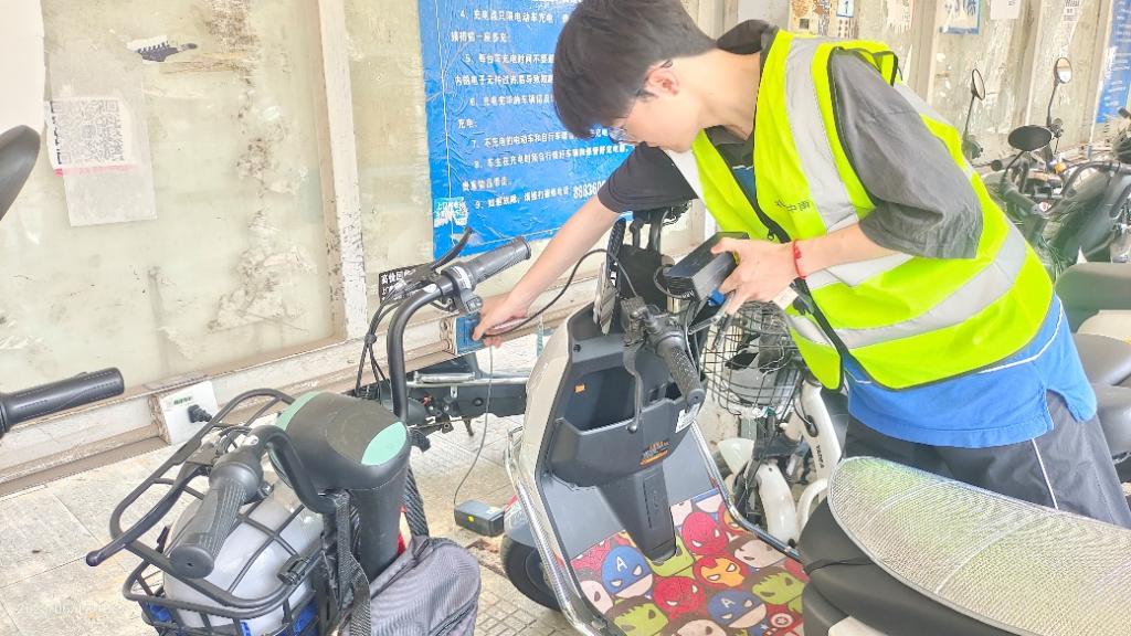 上午10:00-11:00,志愿者王徳佳、谭皓铭、王尔博、陈硕分别在新校区B座、C座教学楼下以及升华公寓电动车停放点进行电动车充电桩排查工作。他们刷卡清查了电动车停放区域内充电桩是否存在故障,对无法使用的充电桩贴上便签提示,并且记录了检查区域存在故障的充电桩。最后,将充电桩故障情况反馈给后勤部相关负责人员。