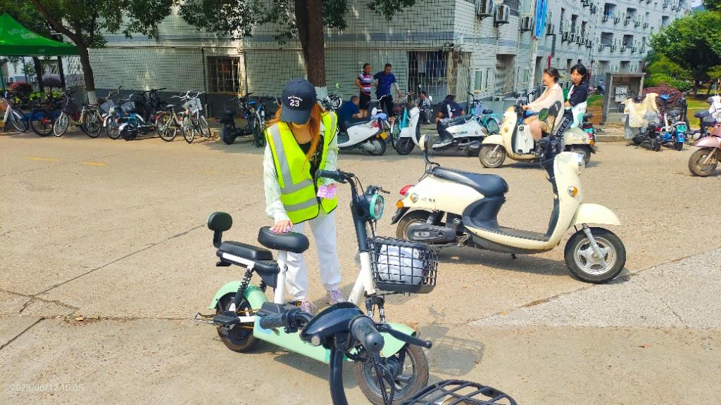 早上9:30-10:30,陈怡榕、杨启帆两位志愿者在升华公寓电动车停放点进行规范非机动车停放工作。为缓解上下课期间升华学生公寓非机动车停放点电动车、自行车的乱停乱放现象,营造良好的停车环境,两位志愿者在上下课时段提醒同学们规范停车。同时,他们对升华公寓的非机动车停放点进行了检查,将乱停乱放的车辆挪动到规定区域并摆放整齐,对于无法移动的电动车,贴上了“文明停车”的提醒标签。