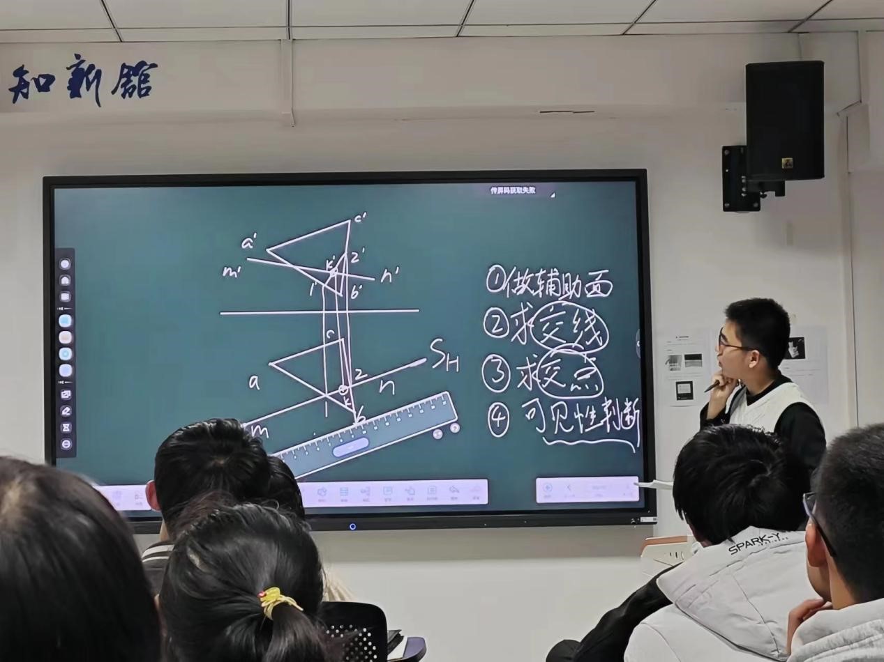 12月14日下午17:00,杨赣同学于知新馆团辅B室为同学们讲解了画法几何1到5章。他在辅学过程中讲练结合,充分与同学们互动交流,及时发现并解决他们在学习画法几何中遇到的困难。同时他的讲解深入浅出,既有知识方面的回顾,也有亲身实践的经验分享。听课的同学们受益匪浅,在积极互动中增强了学习专注度,增长了学科知识。
