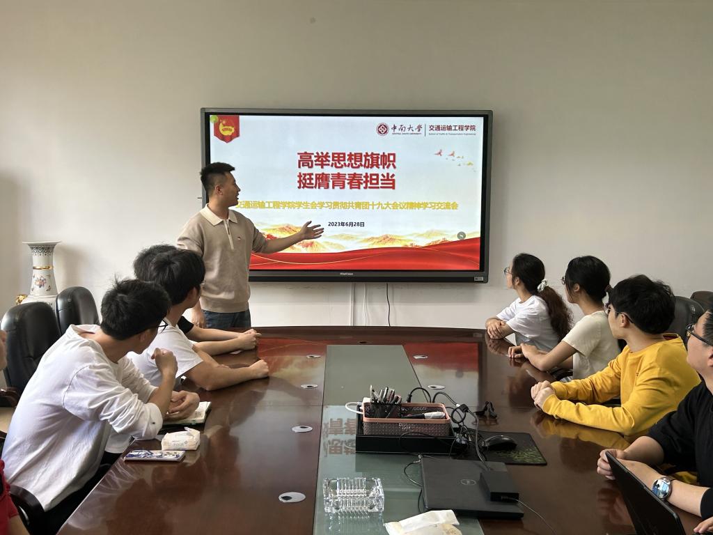 6月28日下午2:00,交通院团委、学生会于交通楼322开展贯彻落实共青团十九大会议精神学习交流会,本次交流会由院团委书记张健老师主持,团委、学生会骨干成员参加。